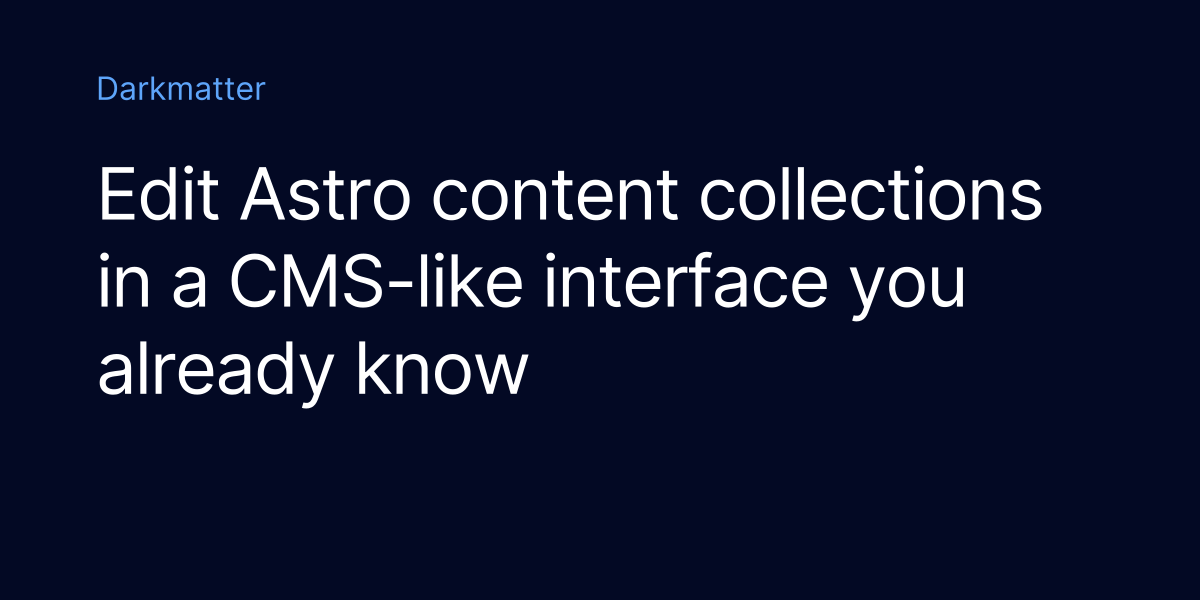 Darkmatter - CMS for Astro content collectionsDarkmatter scans your Astro content collections and generates an interface for managing their content.